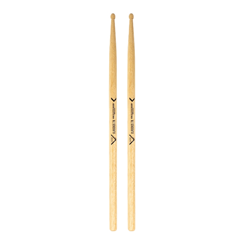Coppia di bacchette Classic 7A in Hickory con punta in legno – Lunghezza: 39,37cm - Diametro: .540"(1,37cm) – Classic Series - 7A realizzata con specifiche tradizionali: un mezzo pollice più corto rispetto al nostro popolare modello Manhattan 7A e con una piccola punta acorn (ghianda) per un suono più ampio ed articolato sui piatti.