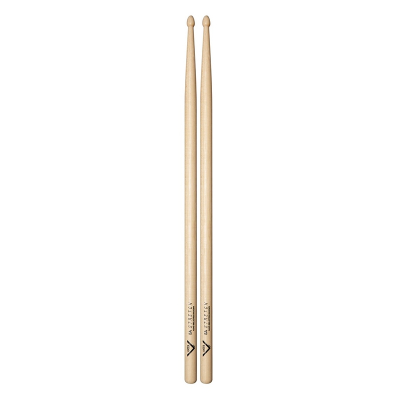 Coppia di bacchette 5A Stretch in Hickory con punta Acorn in legno - Lunghezza: 42,55cm - Diametro: .570"(1,45cm) - American Hickory series - Stesso grip di una 5A ma con una maggiore lunghezza ad ottenere più agio di movimento sul set - Punta Acorn piccola per un suono caldo e ben definito sui piatti - Una bacchetta estremamente versatile.