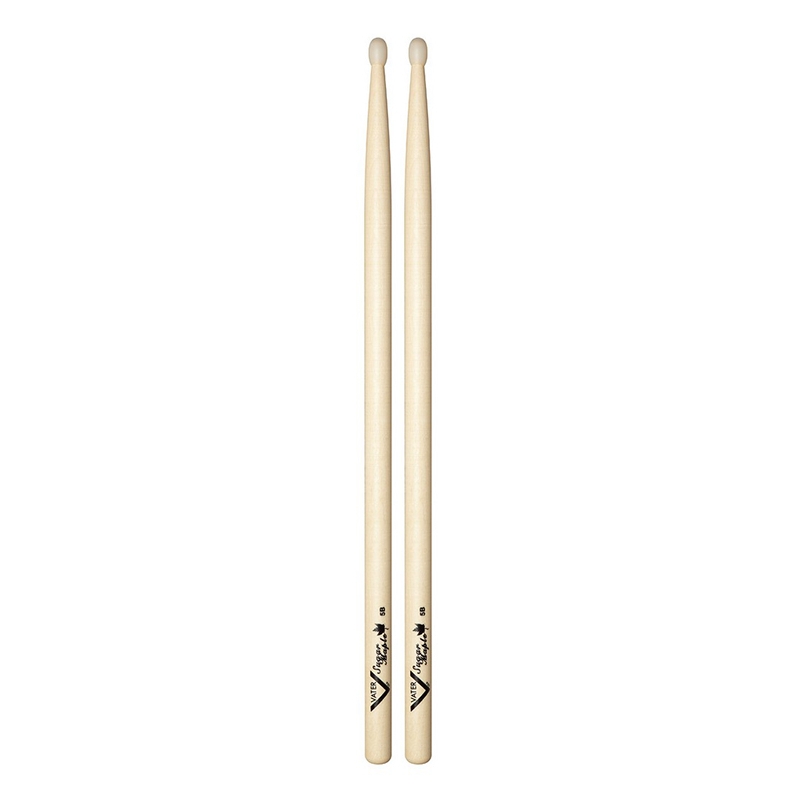 Coppia di bacchette 5B in Acero con punta in Nylon - Lunghezza: 40,64cm - Diametro: .605"(1,54cm) - Sugar Maple Series - Diametro del collo rinforzato per maggior potenza e durabilità con punta Acorn che dona alla bacchetta un suono corposo - Ottima risposta.