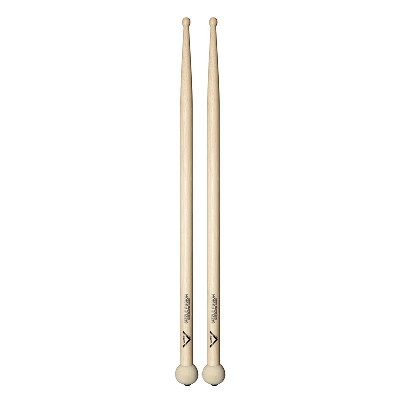 Coppia di bacchette Sizzle Fusion Stick in acero con una punta in feltro duro e una punta ball in legno in estremità opposte - Costruita su base di una Blazer in acero il battente in feltro è stile ultra staccato di piccole dimensioni quindi duro e la punta è una ball in legno per ottenere due suoni utilizzando una sola bacchetta.