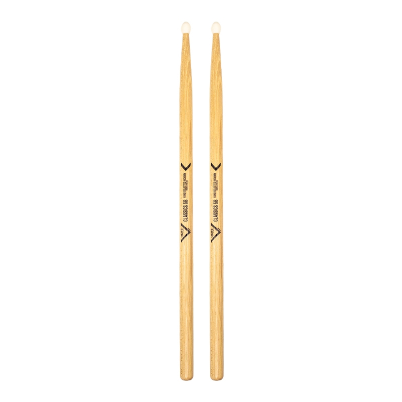 Coppia di bacchette Classic 5B in Hickory con punta in nylon - Lunghezza: 40,65cm - Diametro: .595"(1,51cm) - Classic Series - Grip leggermente più sottile rispetto al popolare modello 5B - La Classic 5B è molto versatile e adatta a più generi e stili musicali, grazie alla sua impugnatura confortevole.