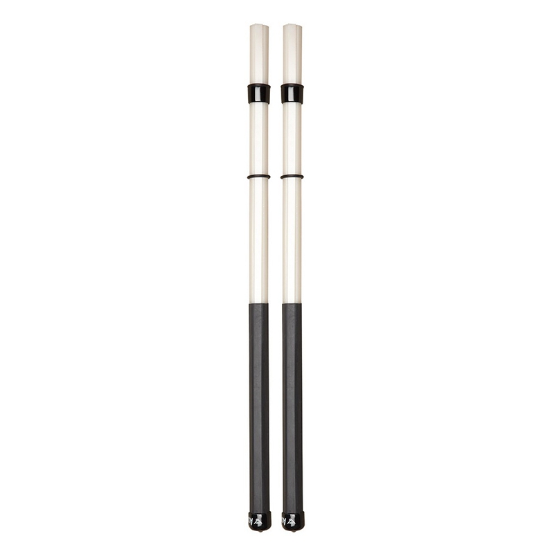 Coppia di multistick Acoustick - Specialty Stick Series - Composta da 7 steli in legno di hickory di 50 qualità e di sezione triangolare e 6 strisce esterne di nylon ultra resistente - Il nylon serve da protezione per gli steli interni in modo da evitarne la rottura - Angoli superiori degli steli esterni arrotondati per un suono più pieno ed un miglior feel - Complete di anelli in gomma per ottenere una vasta gamma di suoni.