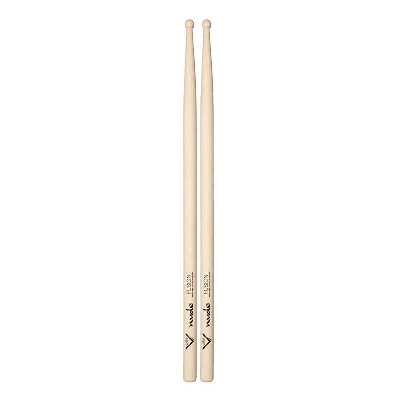Coppia di bacchette Nude Fusion in Hickory con punta Ball in legno - Lunghezza: 40,64cm - Diametro: .580"(1,47cm) - Nude Series - Non trattata, quindi lasciata grezza per migliorare il grip - Grip tra 5A e 5B con punta piccola e rotonda per un suono più definito sui piatti.