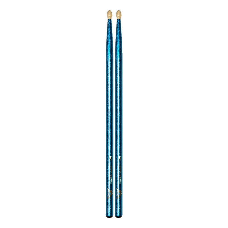 Coppia di bacchette Color Wrap 5B in Hickory con punta in legno - Lunghezza: 40,64cm - Diametro: .605"(1,54cm) - Color Wrap Series - Molto versatile - Colore: Blu Sparkle.