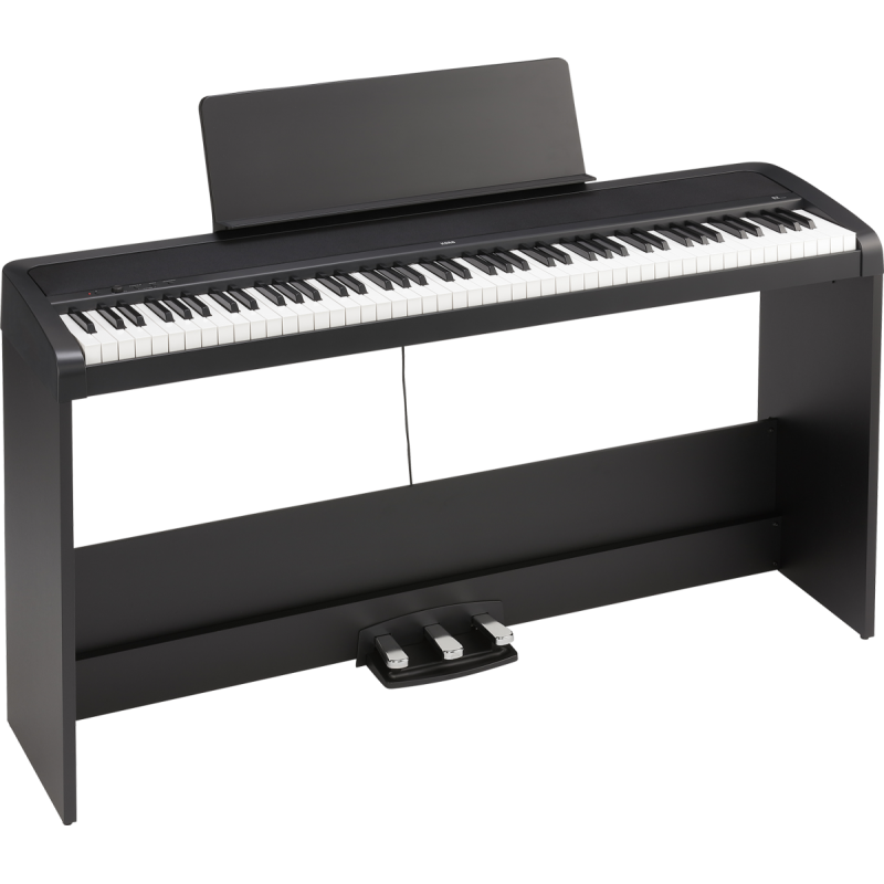 Pianoforte digitale B2 con supporto di facile montaggio e un'unità a tre pedali, un insieme che offre l'esperienza di suonare un vero pianoforte a coda. Questo modello include tutto ciò che serve per divertirsi a suonare il piano seriamente. Viene fornito con un supporto dedicato, ed una unità 3 pedali.